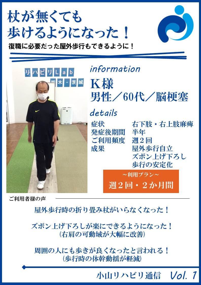 また、退院直後は歩きにも不安があり、外を歩く時は折り畳みの杖を持っていないと不安でしたが杖を持ち歩かなくて良くなりました。リハビリLabの女性スタッフから「歩き方がキレイになりましたね」と言われた時は嬉しかったですね。